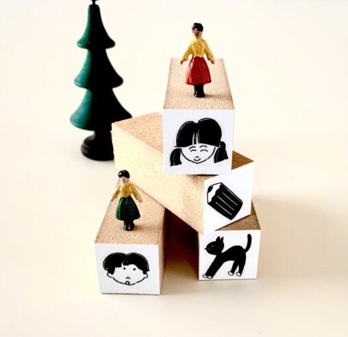 えんぴつを持ったふたりの子どものスタンプです。こちらは少…
